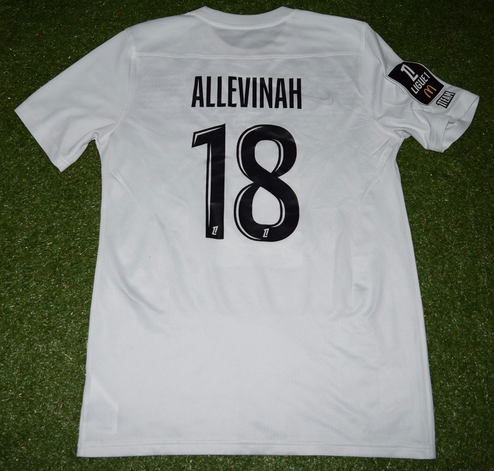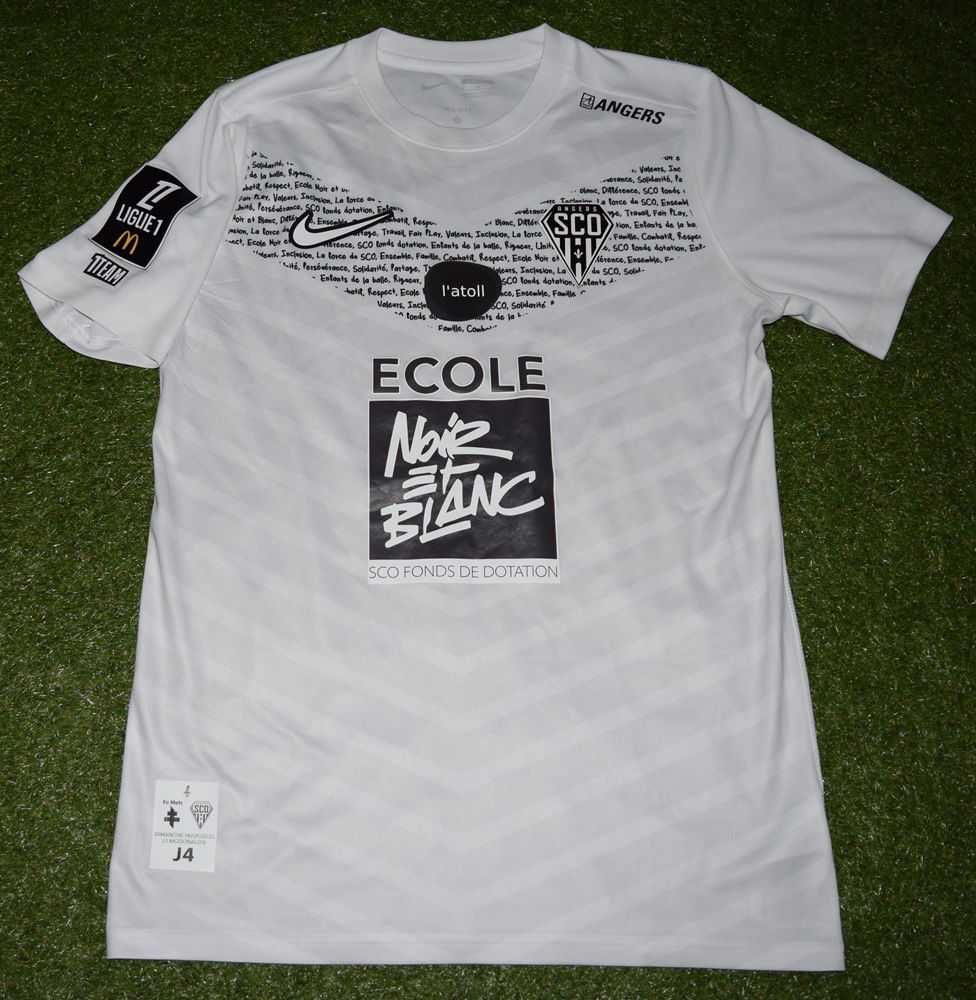 Maillot extérieur préparé en vu de la 4ème journée du championnat de Ligue 1 2025-2026, pour Jim Allevinah ; lors de ce Metz-SCO à l'extérieur : match nul 1-1, Allevinah faisait partie du groupe intial mais s'est blessé au mollet la veille du match. Ce match a été joué le 14 septembre 2025 devant 21107 spectateurs.