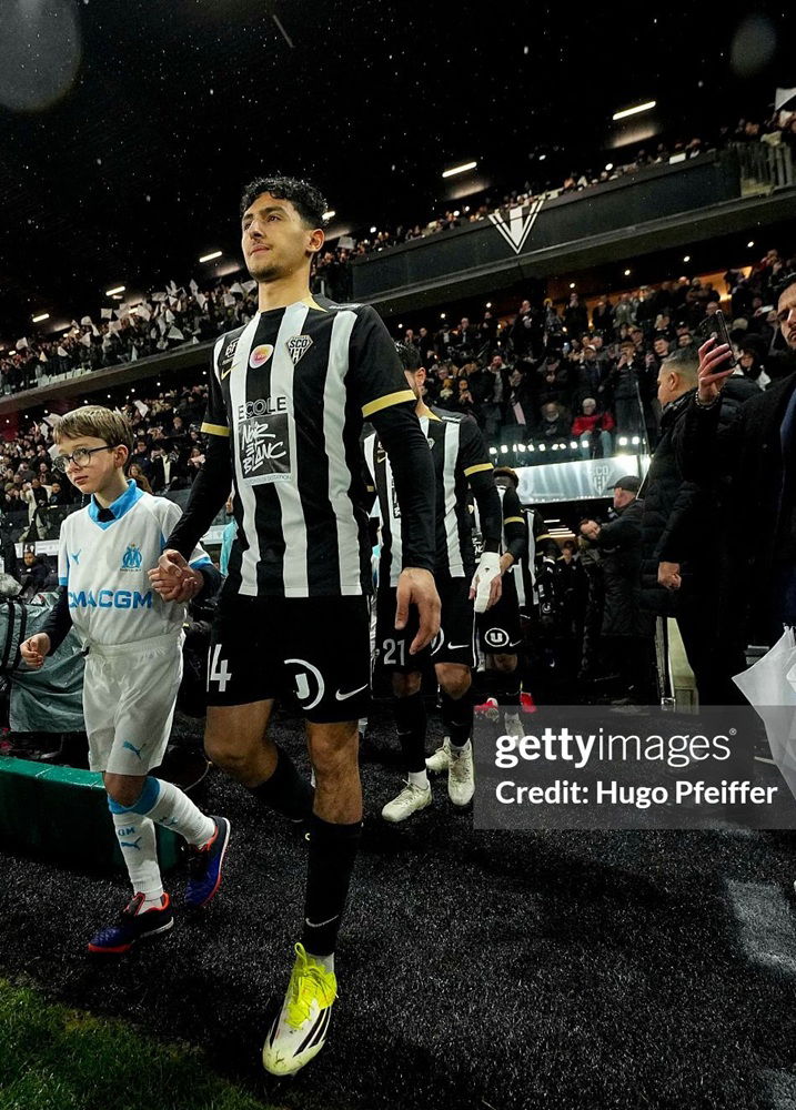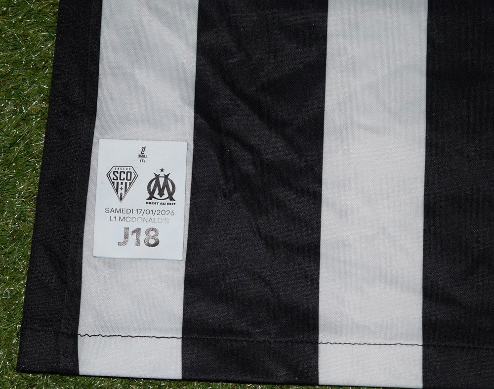 Maillot domicile porté lors de la 18ème journée du championnat de Ligue 1 2025-2026, par Yassin Belkhdim ; lors de ce SCO-Marseille à Raymond Kopa : défaite 2-5,Belkhdim a joué toute la rencontre. Ce match a été joué le 17 janvier 2026 devant 15266 spectateurs.