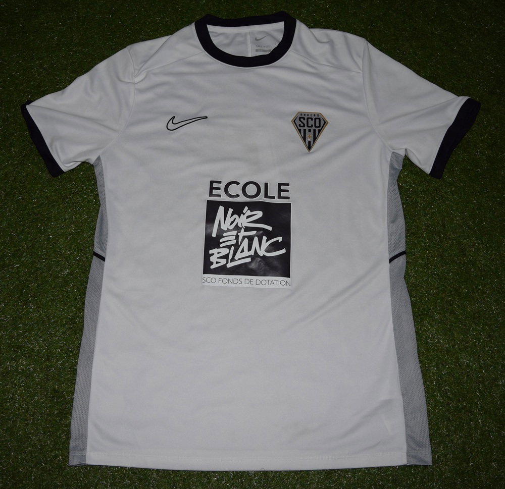 Maillot de présaison porté lors de l'intersaison 2025 par Marius Courcoul lors du match amical Caen-SCO à Alençon : victoire angevine 0-1 à l'extérieur. Courcoul a débuté la rencontre avant d'être remplacé par Yassin Belkhdim à la 32ème minute. Ce match a été joué le 19 juillet 2025 devant environ 1300 spectateurs.